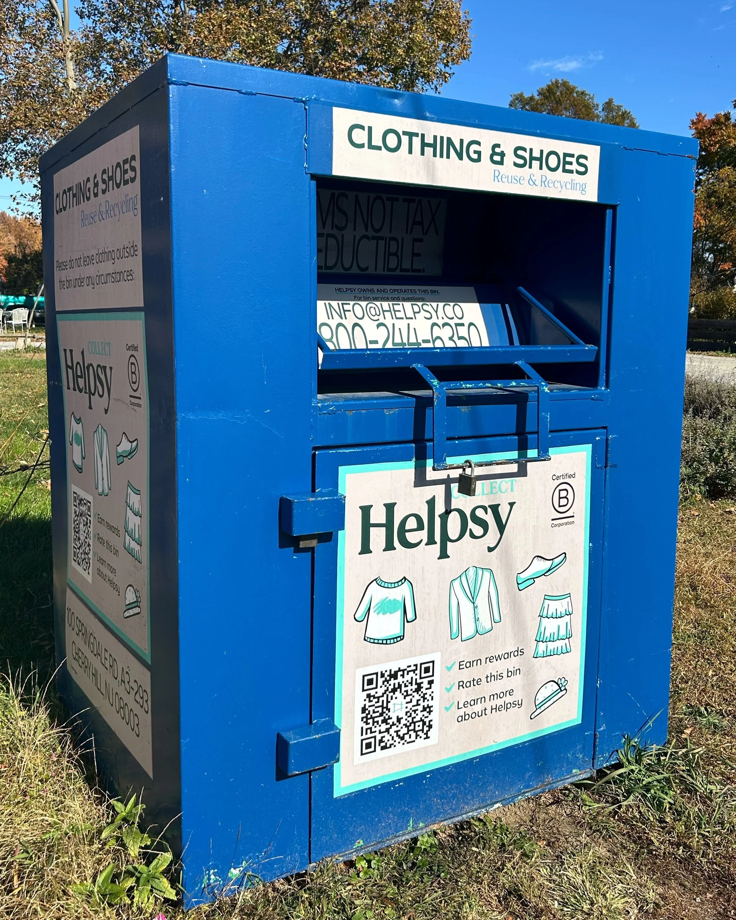 We've partnered with Helpsy, the largest textile collection company in the Northeast, to keep clothing and fabrics out of the landfill.